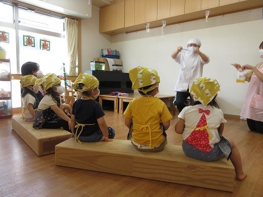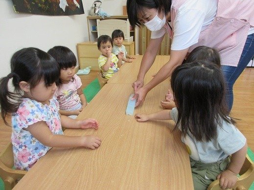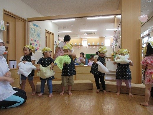 毎日雨が続き、各地の災害も心配な今週でした。室内でも楽しい経験ができるように過ごしています。コロナウイルスの感染も広がり、緊急事態宣言が発令されました。集団生活のリスクを考え、できるかぎりの対策をとりながら園生活をしています。みんなで協力しあって、安心して過ごせる日を迎えられるように乗り越えていきましょう。