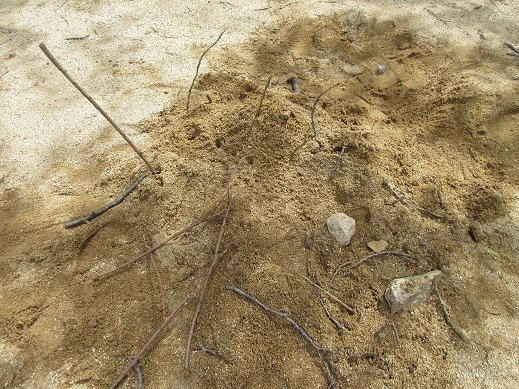 土の上にのせると、頭を動かしながらあっという間にもぐって行ってしまいました。「めっちゃ早いなー!」「頭 こうやってた」真似っこがはじまりました。