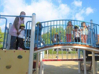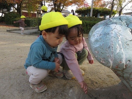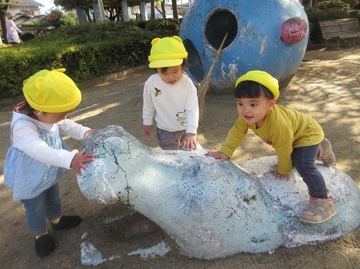 星グループさんは、初めての公園に行きました。ちょっと遠いから歩けるかな?の心配もご無用。トコトコ元気いっぱい。帰りもしっかり歩いて帰ってきましたよ。歩いて行ける公園の範囲が広がり、2つも増えました!