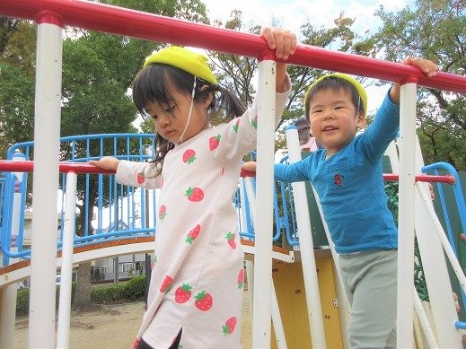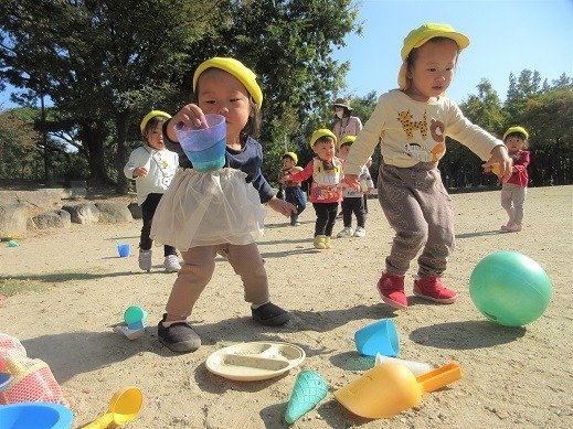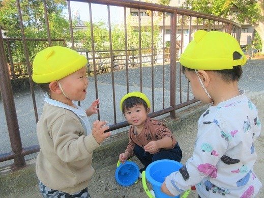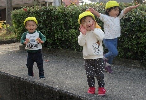 外でもいっぱい遊びました。かわいい笑顔がたくさん!お友達と遊ぶの楽しいね!