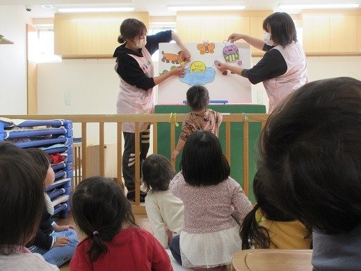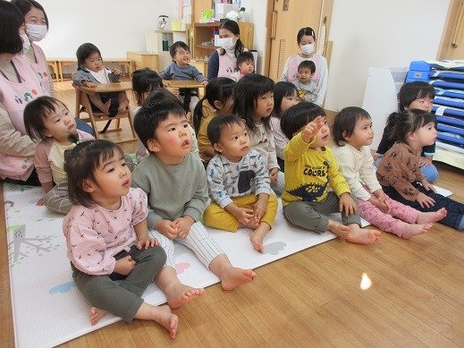 お楽しみ会のお話は…なんでしょうか?みんな集中してみています。