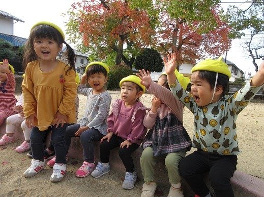 「はーい!」元気いっぱいの子ども達。紅葉もとってもきれいになりましたね。