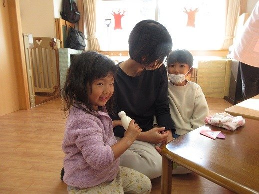 クンクンクン~♪小さな容器の中には柚子の皮とアロマティカスが入っていて、香りを比べっこ。いい香りだね。どっちが好き?「この匂い知ってる!」香りは脳の記憶の部分を刺激するそう。思い出に残る香りになるかもしれないね。