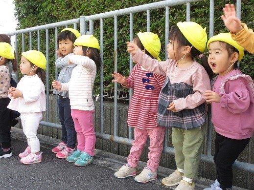 「ばいばーい!」運転手さん 気が付いてくれたかな?みんなの大きな声は きっと聞こえたよね!