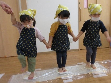 さぁ みんなの出番!お手伝いよろしくね!ずらりと並んでせーの!ふみふみ♪ふみふみ♪