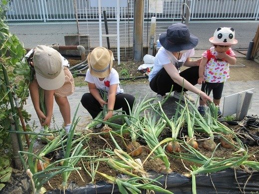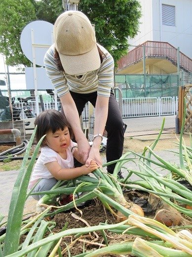 GW中に玉ねぎの収穫もしました。お父さん・お母さん、お姉ちゃんやお兄ちゃんも来てくれて大きな玉ねぎをうんとこしょ!