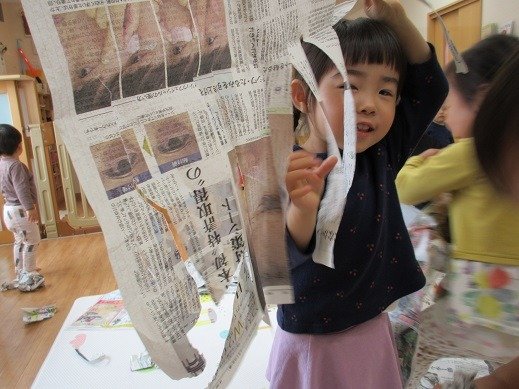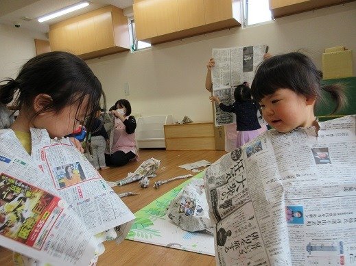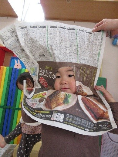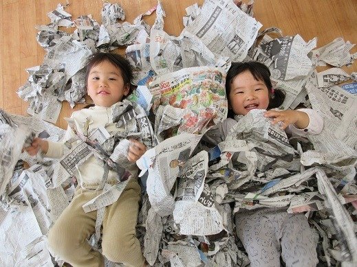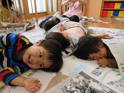 新聞紙のお布団は、葉っぱの下にいる虫さん達みたいだね。おやおや…本当にねちゃいそう~♪