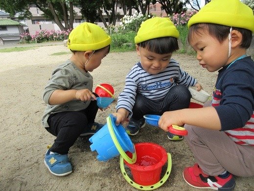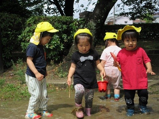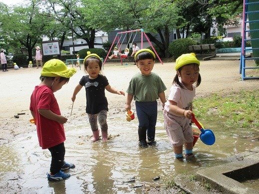 これから雨が続く日もあるでしょう。雨上がりの楽しみや、カエルの声、雨を集めたり、音を楽しんだりと楽しみもいっぱいです。どろんこのお洋服のお洗濯は大変かと思いますが、いっぱい遊んだね!と喜んであげてくださるとうれしいです。