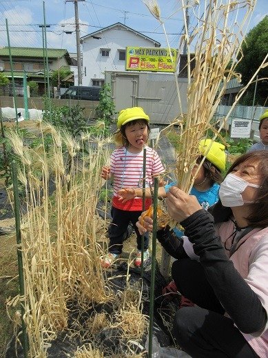 麦も収穫しました!麦茶を作ります。「あつーい日に飲ませてあげたいんだよね、おいしい!!!ってなるでしょ」と先生。暑い日の麦茶おいしそうですよね。