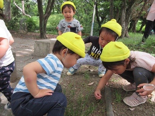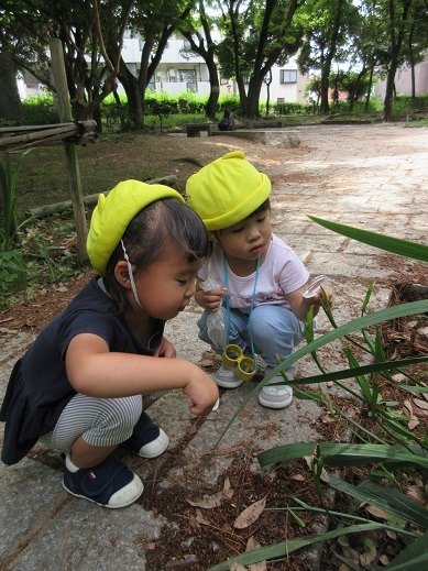 今日も虫メガネを使って虫探し。かわいいお話が聞こえます。