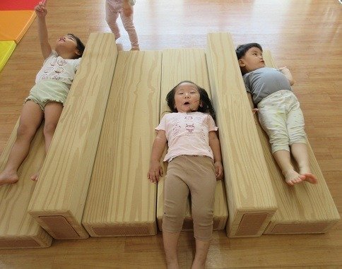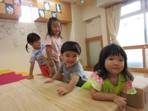 電車みたいに並んで乗ってみたり。お友達と遊ぶのがとっても楽しくて、真似っこしながら遊びが広がっていくみたい。遊びを発見する名人さんたちがいっぱいで、いつも感心しちゃいます。