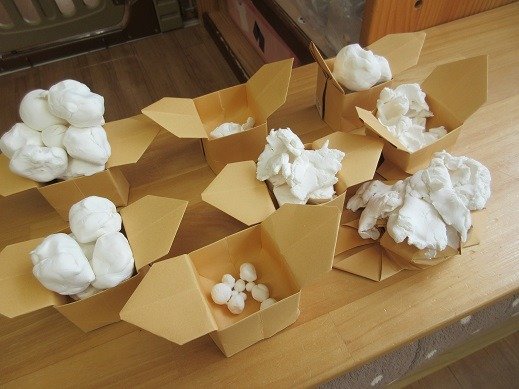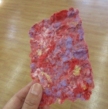 こんな和紙を作りました。星の形やハートの形に詰めて乾かしているので、完成が楽しみ!