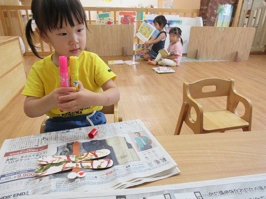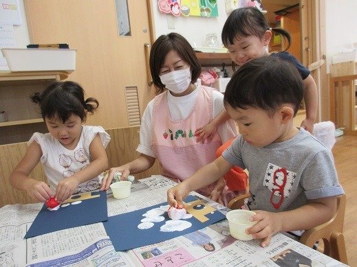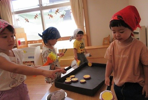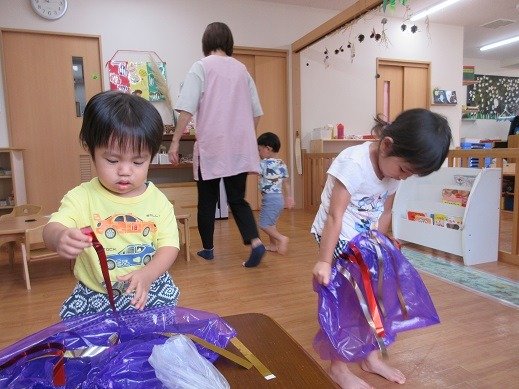 10月はハロウィンがお楽しみイベントの一つ。さっそく衣装作りをしました。それにね、おみこしや、おみせやさん等、楽しい遊びを計画中です。遊びの中から、体と心の成長を支えていきたいと思います。10月もいっぱい遊ぼうね!
