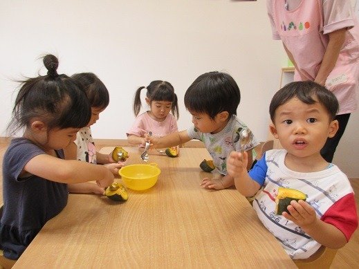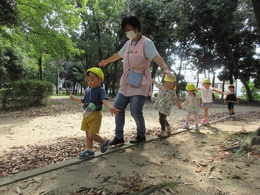 秋らしくなりましたが、まだまだ暑いので、木陰がある公園はとっても気持ちいいですよ。子どもたちも先生達も、汗だくで帰ってきたら、ちょうど給食ができあがるいい香りがしてきて、手を洗いながら「おなかすいたね!いっぱい遊んだもんね」なんてお話が聞こえてくるんですよ。