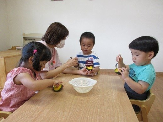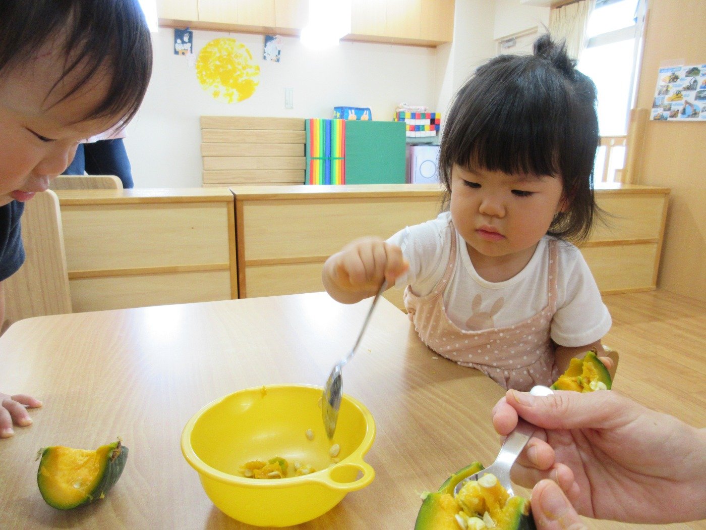 できたできた♪うまく種がとれたね。スプーンもうまく使えるようになったでしょ!