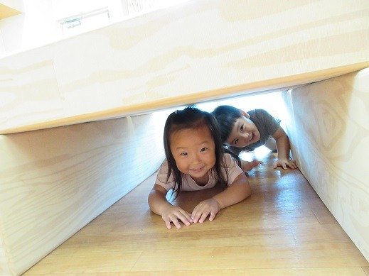 狭いトンネルから覗いてニッコリ。笑顔がたまらない!そ~っとそ~っと通ってみたり