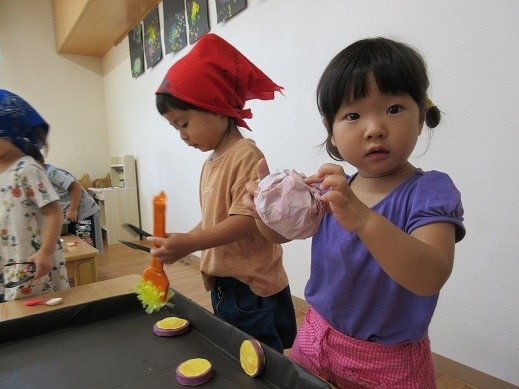 お芋を焼いたり、ソースを塗ったり、お店屋さんは大忙しのようですね。