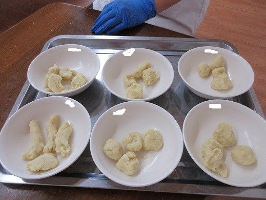 手のひらにもつけて おもしろ~い形のお団子ができました。