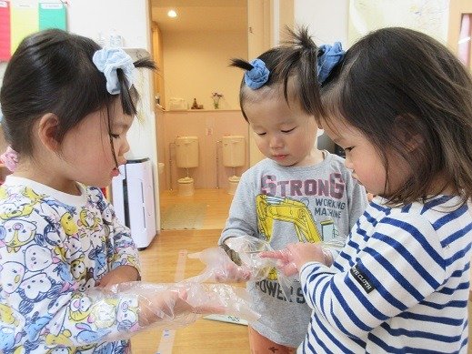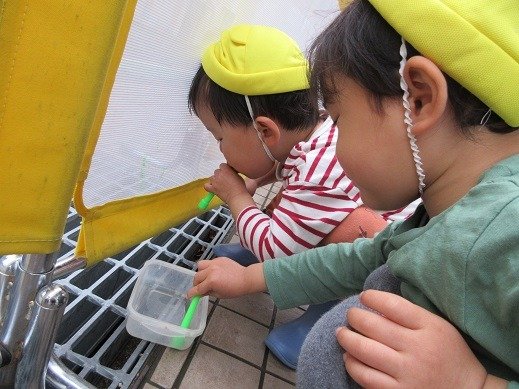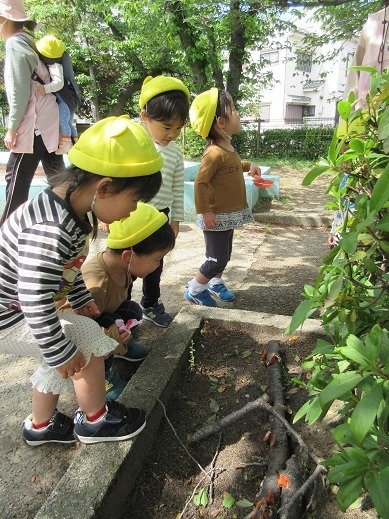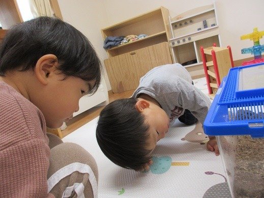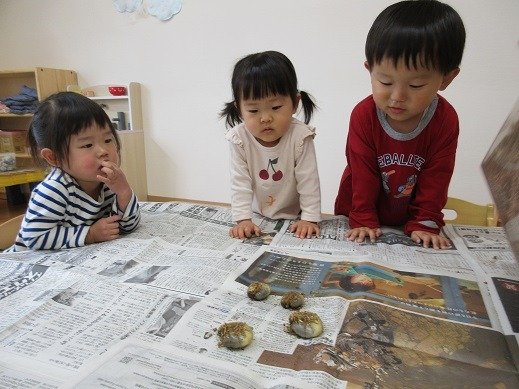 なになに??って参加したくなっちゃいますが、「なんやろ?」「おった!」「ここいれとこ」子ども達の会話がかわいいので、そっと聞き耳をたててニンマリ。子どもたちの世界をくずしたくないですからね。
