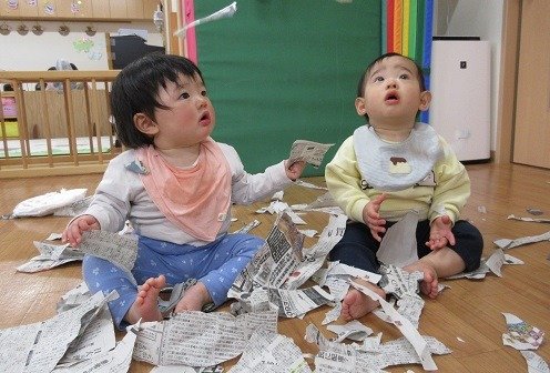新聞紙遊びでも ギュッと握ってフリフリしたり、じ~っと眺めてみたり。ひとつひとつの仕草がかわいくてたまりません。