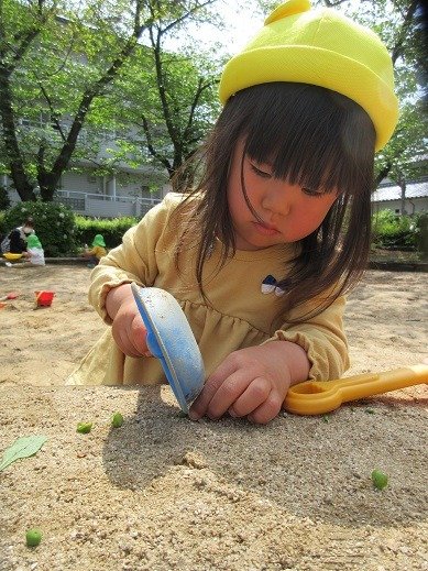 砂の感触も大好き。みんな汚れるのを嫌がることがなく、やってみたい!!の気持ちがいっぱい。