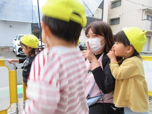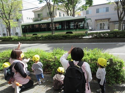 バスを見に行ったりもしました。「ばいばーい」と手を振ると、バスの運転手さんやお客様も手を振ってくれて嬉しくなりますよ。