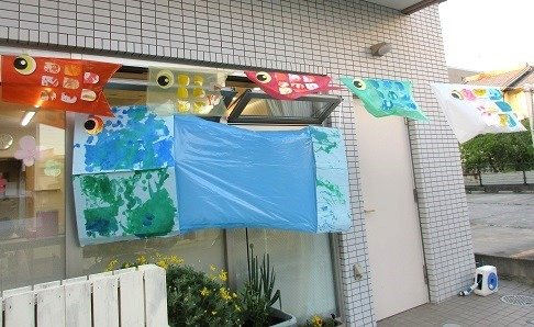 今日は子どもの日のつどいをしましたよ。持ち帰ったこいのぼり製作は、かわいい足型こいのぼり。