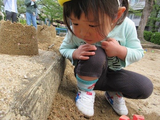 作ったお山をつぶすのが楽しいお友達の遊びを真似っこしたり。