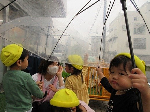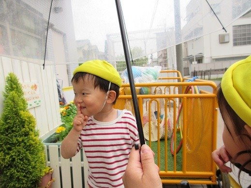 先日のこと。散歩に行こうとしたら、雨が降ってきました。ポツ。ポツ。「ねぇ、なんか音がするよ」先生が耳に手を当てていいました。