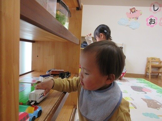 お部屋でも好きなおもちゃや遊びを見つけたようですよ!雨が降った金曜日はすべり台やマットでしっかり体を動かしてあそびました。