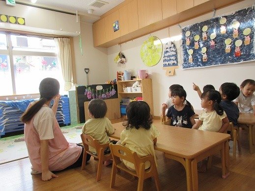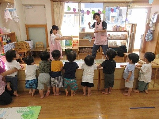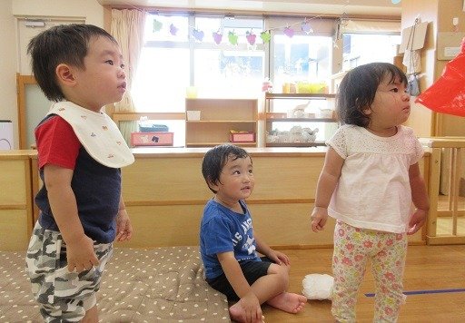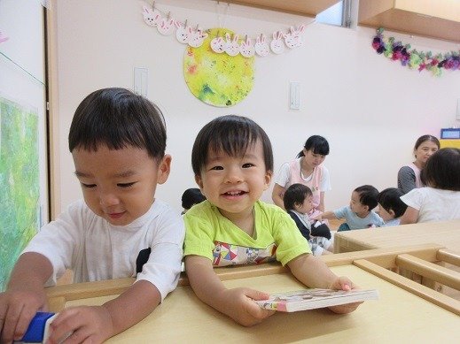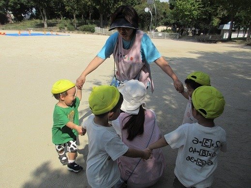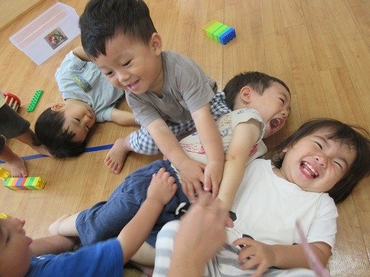 わらべうた遊びを楽しむ子ども達。先生にしてもらうだけじゃなくて、お友達同士でも楽しむようになりました。笑顔っていいですね!