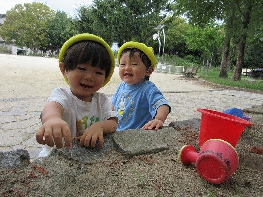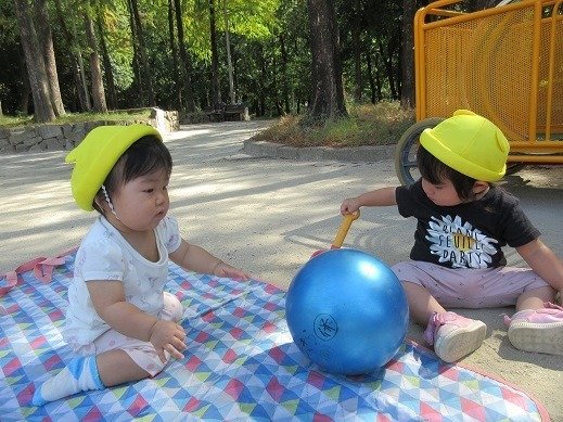 日中は暑いですが、木陰は気持ちよく、大好きなままごとやボールを持って公園にでかけています。