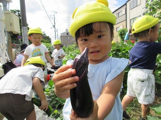 畑のナスは丸ごと焼いて、焼きナスにしました。「もっと食べた~い」「おいしー」「おかわり!」おいしくいただきました。