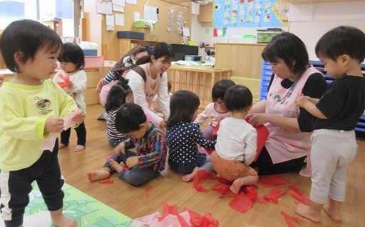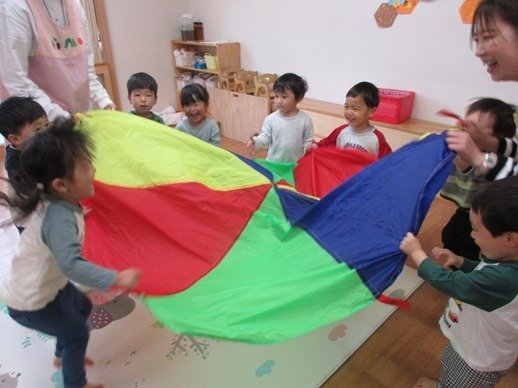 お友達と一緒に遊ぶのが大好き!笑う顔ってつられますね。一人の笑顔でつられてみんな笑顔になっていって、楽しいが広がっていくんですよね。先生も大笑いです。楽しかったですよ。