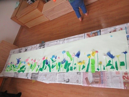 お花畑ができました!窓に貼ると、お部屋にも春がきたみたいに明るくなりましたよ。