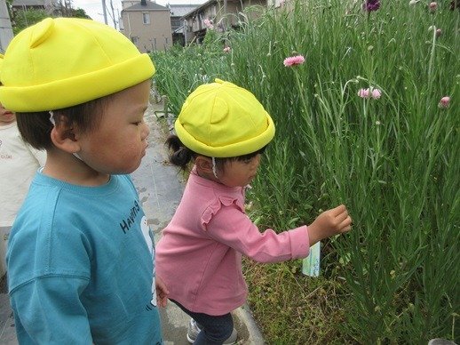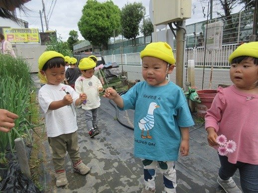 保育園の玄関に飾っている矢車菊は、エディブルフラワーとしてもハーブティーとしても利用でき美容にも良いそうですよ。ツタンカーメンの墳墓からエンドウ豆と、この花が発見されたそうですから、古くから親しまれた花なんですね。畑にたくさん咲いているので覗いて見てくださいね。