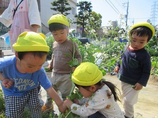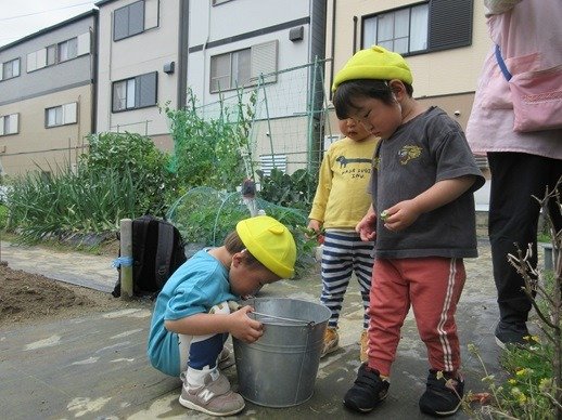 畑にやってきたうさぎ組さん。こんなに小さいのに、きちんと目的を理解していて驚かされます。