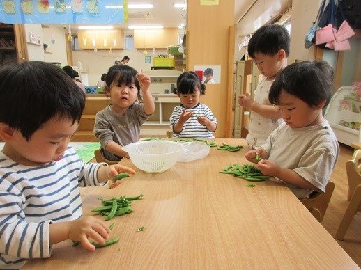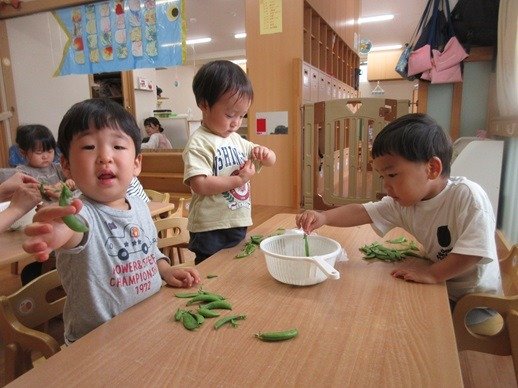 持ち帰ったスナップエンドウの筋をとるお手伝いをしてくれました。