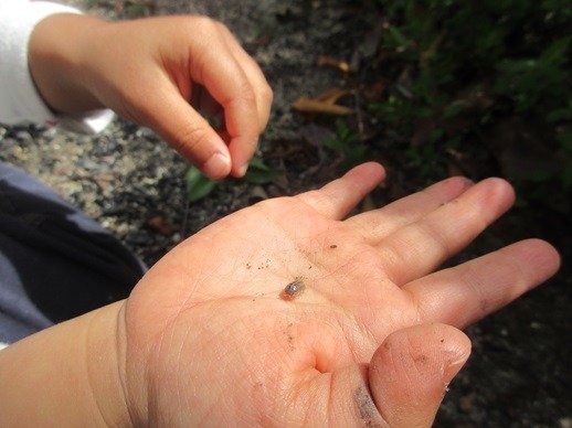 つぶしているように見えますが大丈夫です。ダンゴムシとはちがう ちょっとレアな虫を見つけた感じでしょうか。子ども達の目の輝きが一段と増した気がしました。笑