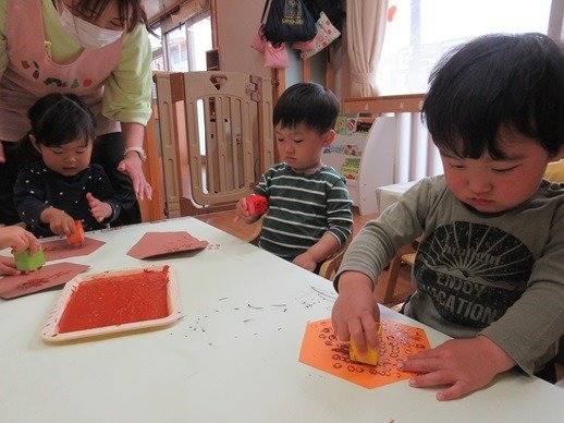 ほしのお部屋では、お花紙を使ってテントウムシを作りましたよ。