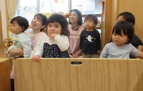 いつも一緒のお部屋にいた先生が・・・。あれれれ?「どうしてそっちのお部屋にいるの?」子ども達は不思議そう。