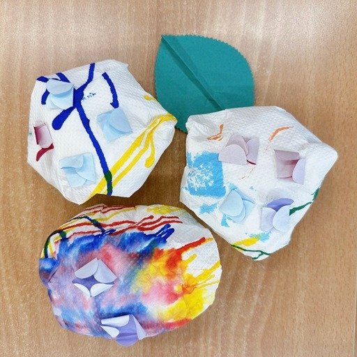 レゴブロックやプチプチを使ってスタンプ遊びをしました。小さな〇がいっぱいでおもしろいね。BBQで美味しいアレになりますよ♪