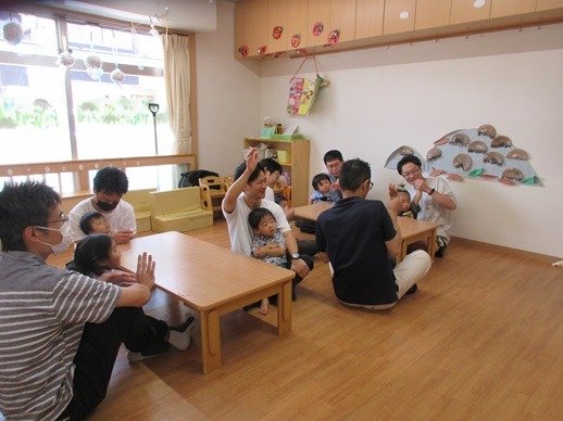 先日はパパの会を行いました。どんなゲームをしたら交流がもてるかな?と悩むところですが、きさくで楽しいお父さん達が盛り上げてくれてありがたいです。簡単クッキングはおにぎらずを作りました。できるだけハードルを下げて簡単にできるもので、食事の楽しさを共有していきたいと思っています。