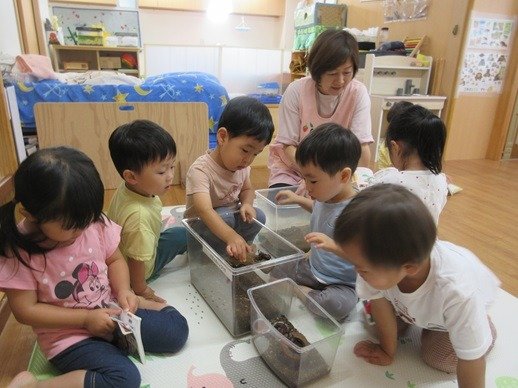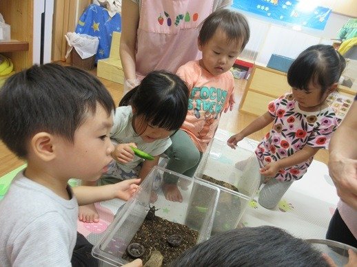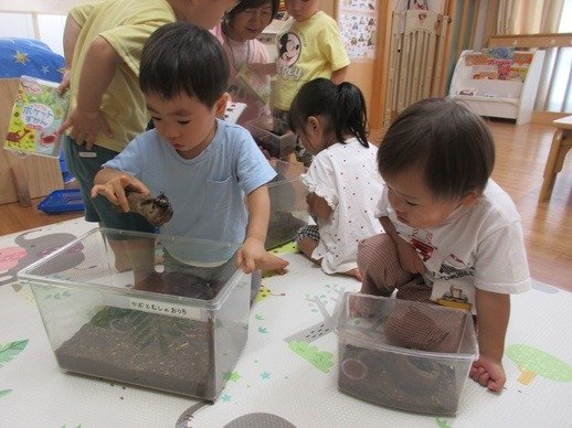 保育園には虫好きな子ども達が見つけてきたり、子ども達に見せてあげたいと先生が見つけてきた生き物がたくさんいます。