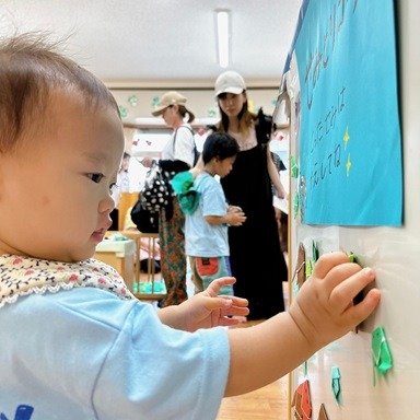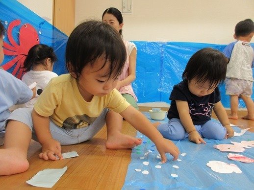 7月ももう終わりですね。ほしの部屋は、保育室が海の中に大変身!魚やタコ、ヒトデも増えましたよ。
