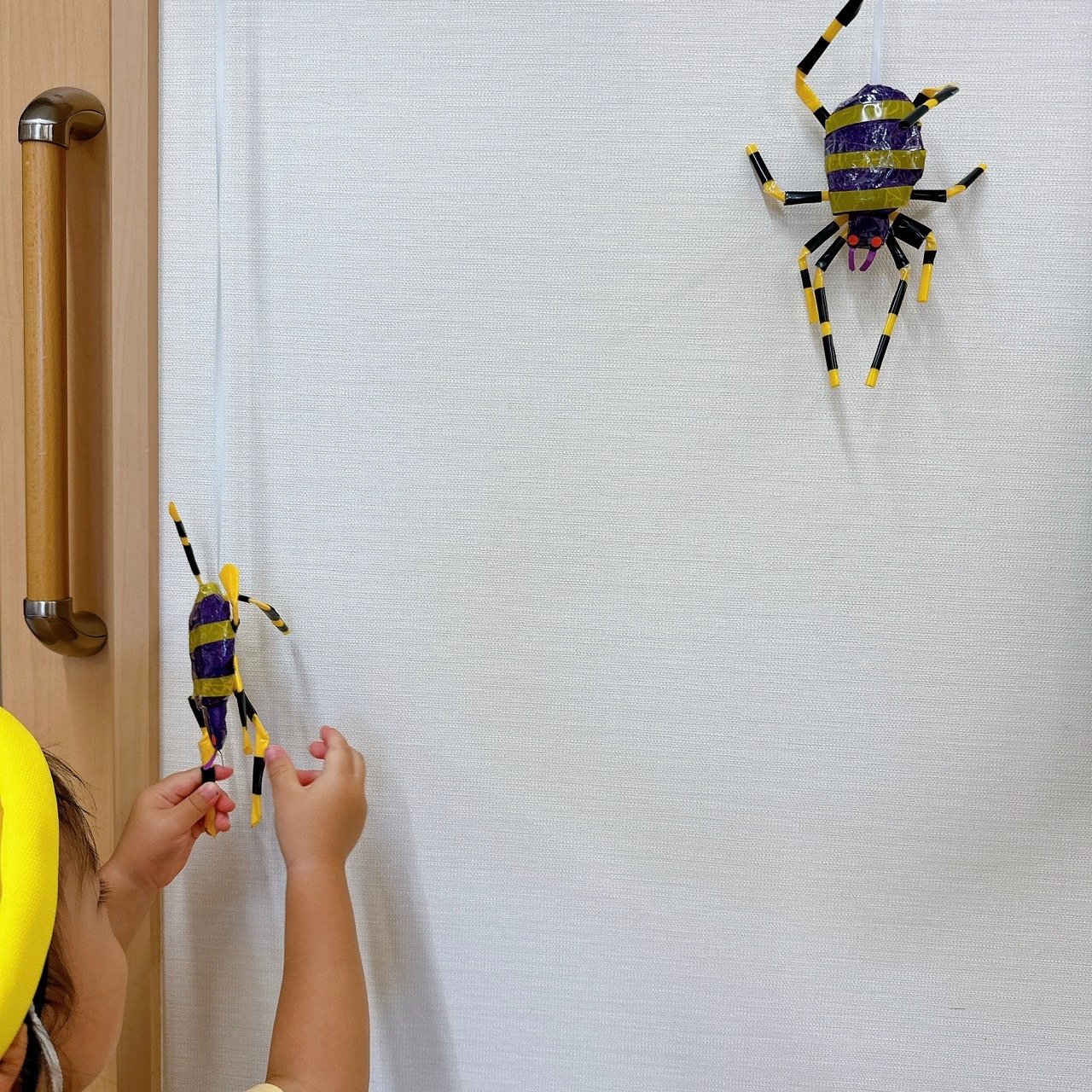 引っ張るとびよ~んとコミカルな動きをするクモが。前回ご紹介したクモさん達、ここにいましたね。