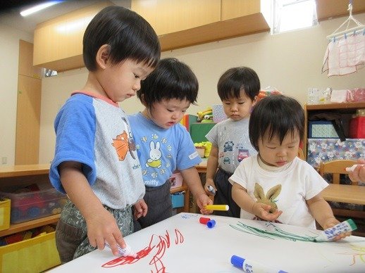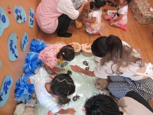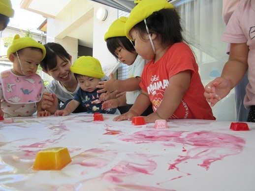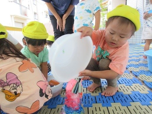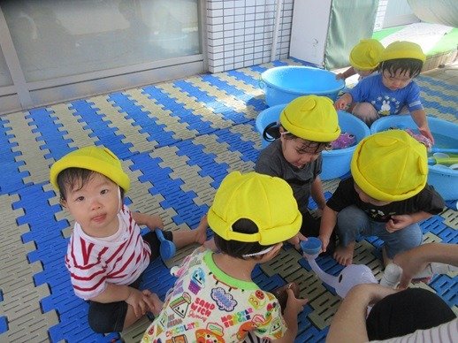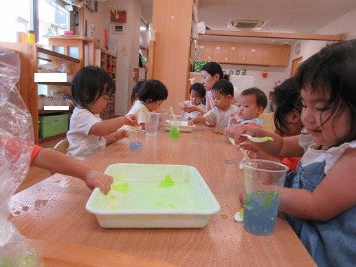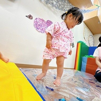 8月も水遊びや絵の具遊び、色を楽しむ遊びをたくさん取り入れて遊びこんでいく予定です。楽しみ 楽しみ。