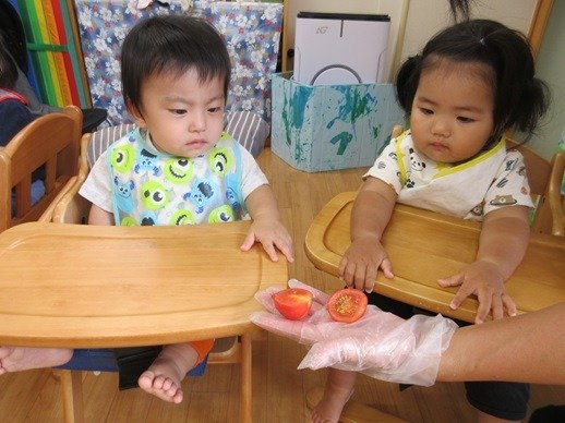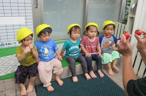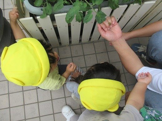子ども達は、緑のトマトが赤くなるのを楽しみにしていて、登降園の時には、保護者の方とトマトの様子をお話しているのが聞こえ、一緒に楽しみにしてくださっているのが微笑ましくてほっこりしています。