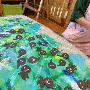 かくれんぼするのはおたまじゃくしとカエルさんも。どうやってかくれんぼするのかな?それは明日のお楽しみ。探してみてね。