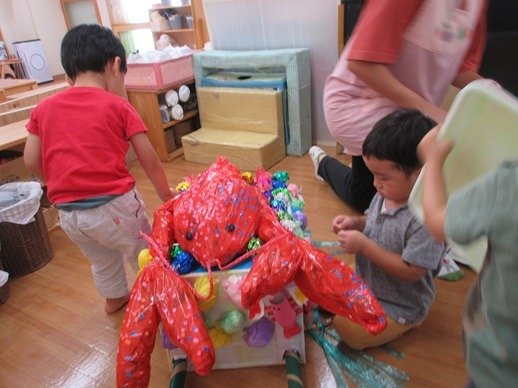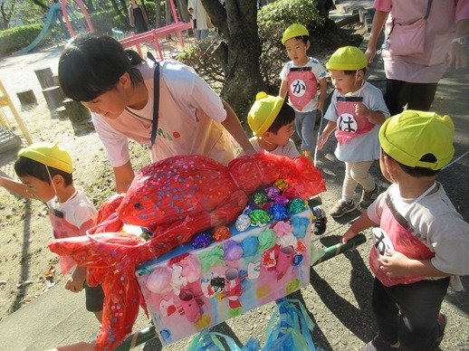 それから、おみこしを作っています。くまぐみさんのザリガニおみこし。